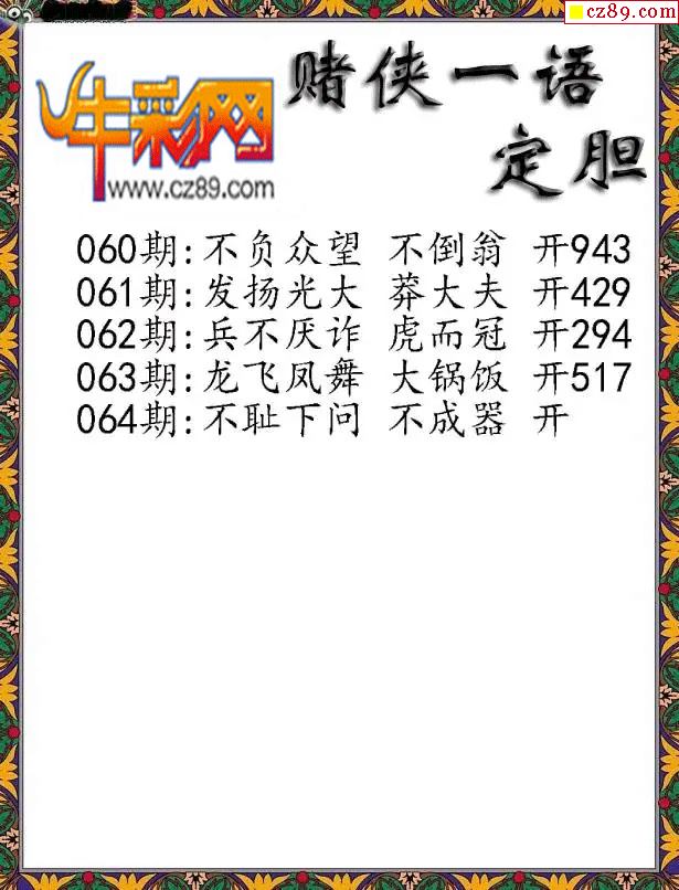 > 福彩3D2026064期彩赌侠一句定三码字图谜