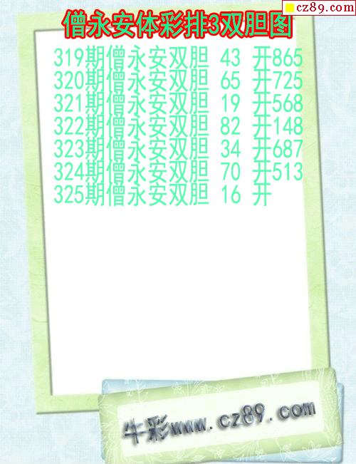 首页 > 排列3图谜 > 25年325期僧永安体彩排3双胆图