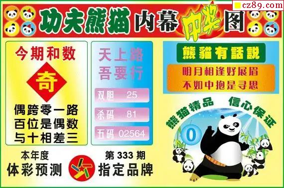 体彩P325年图迷333期 功夫熊猫内幕中奖图