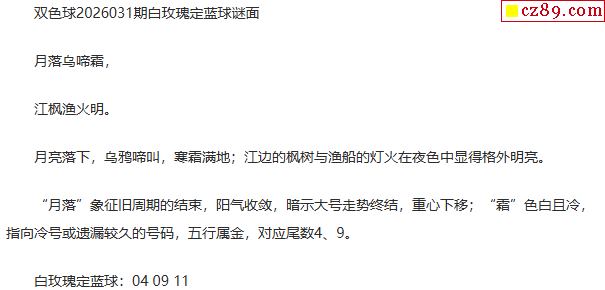 26年福彩双色球031期 白玫瑰定蓝球字谜