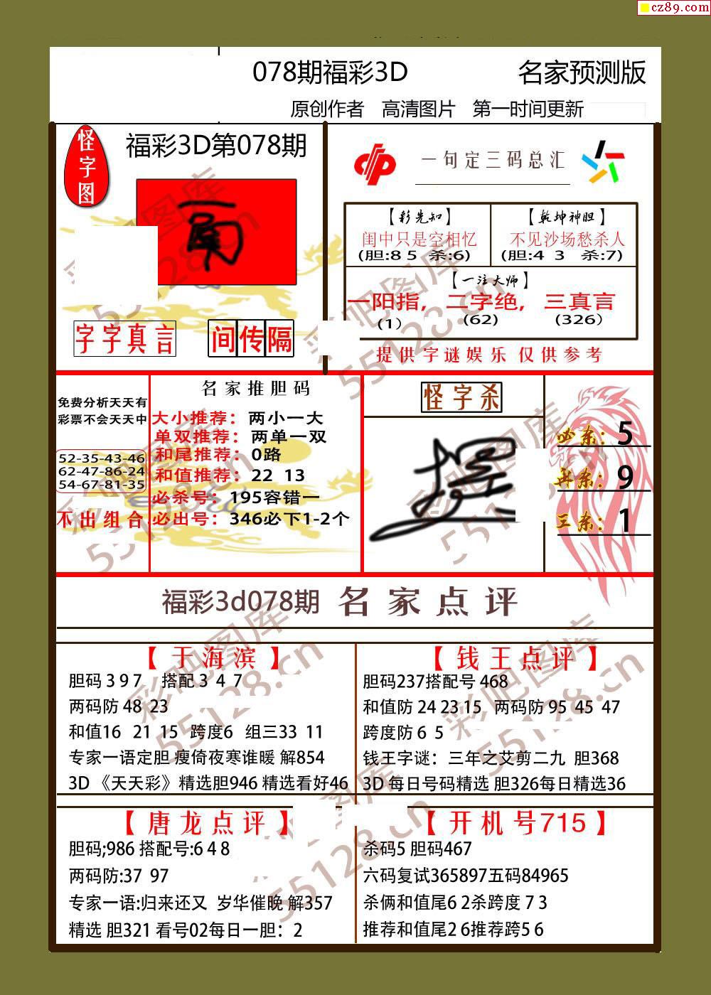 首页 > 福彩3D图谜 > 26年078期福彩3d牛彩名家预测图谜