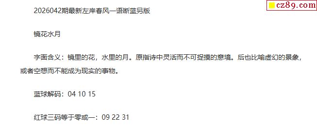 > 26年福彩双色球042期 左岸春风一语断蓝另版