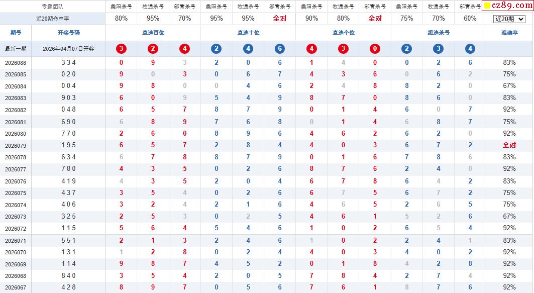 26年087期彩宝贝专家体彩P3杀号定码图表