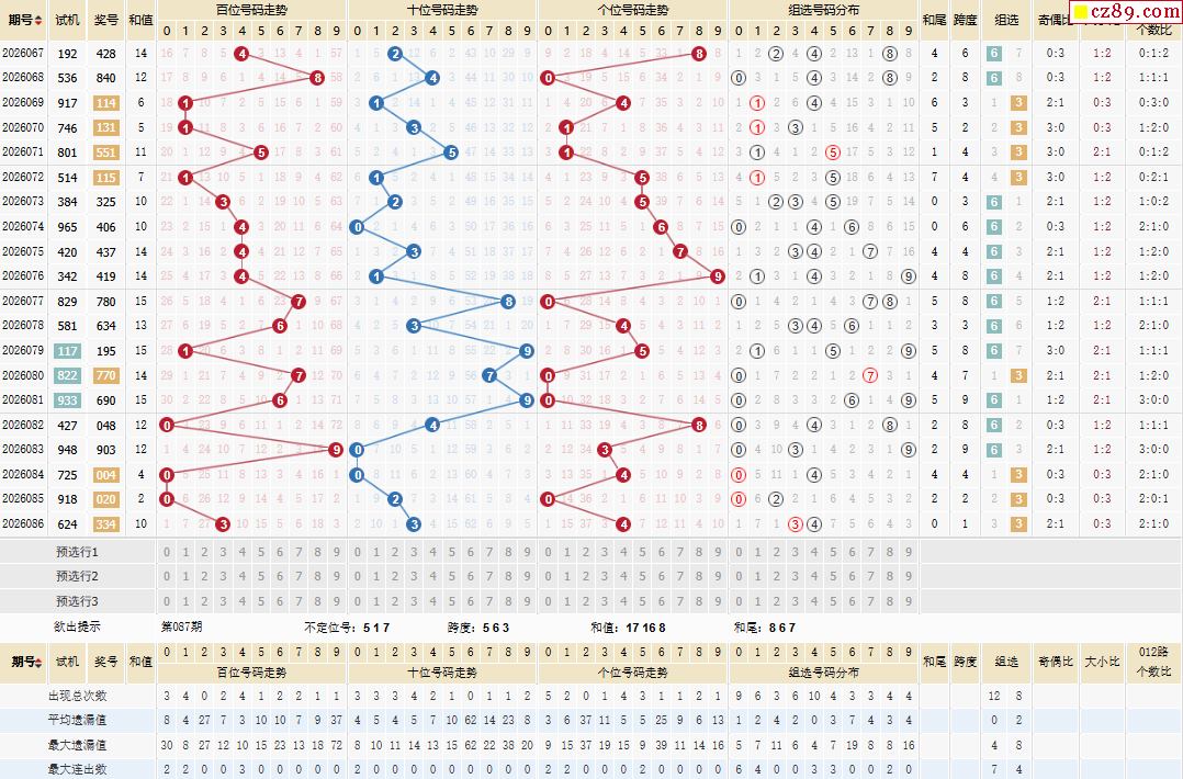 087期体彩排列3近期历史号码图表